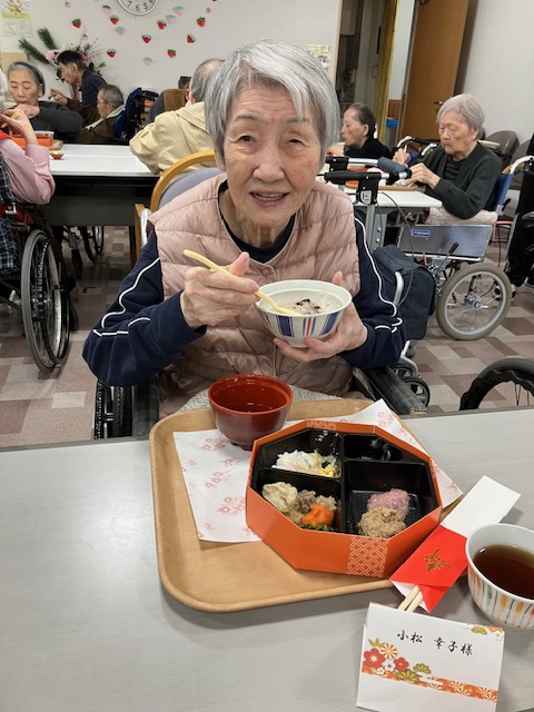 元旦は、彩り豊かな「おせち料理」を皆様で囲みました。「お正月だねぇ」と一品ずつじっくり味わわれ、新春の雰囲気を感じていただくことができました。