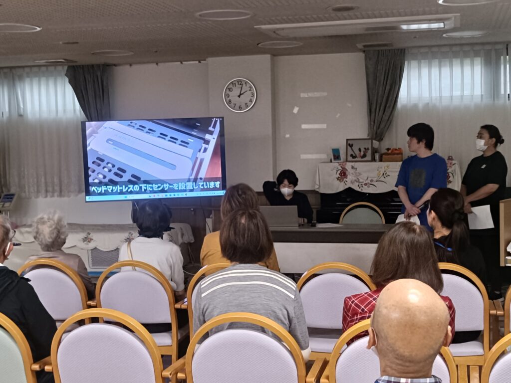 まずは職員より、見守りセンサーの活用方法についてご説明しました。機器の説明動画をもとに安全と安心の両立を目指す取り組みをご紹介しました。