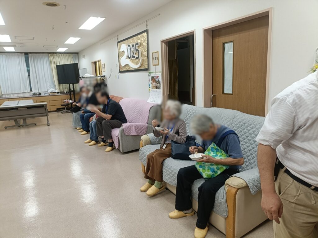 その後、ご利用者様の日常の様子をスライドショーで上映しました。普段の笑顔や活動のひとこまをご家族にもご覧いただきました。